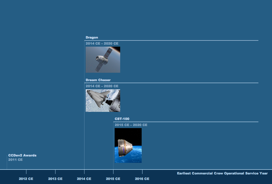 Representatives from the recent Phase 2 awardees of NASA’s Commercial Crew Development (CCDev) Program were on-hand last week at Kennedy Space Center to speak to reporters about the future of their respective companies and spacecraft. One of the practical outcomes of this meeting was that it provided a coherent sketch of the timeline for potential United States manned commercial orbital spaceflight services.